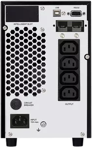 UPS обладнано портами USB та RS232, а також слотами для SNMP карт, що дозволяє легко керувати та віддалено моніторити з комп'ютера, підвищуючи безпеку підключених пристроїв.