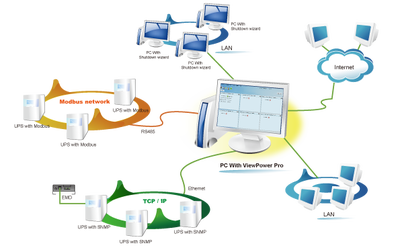 - Забезпечує керування та моніторинг кількох UPS через LAN та INTERNET.