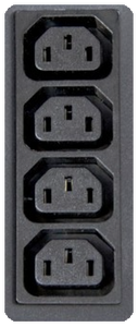 Вісім розеток IEC320 для підключення різноманітних пристроїв з безпечною подачею живлення.